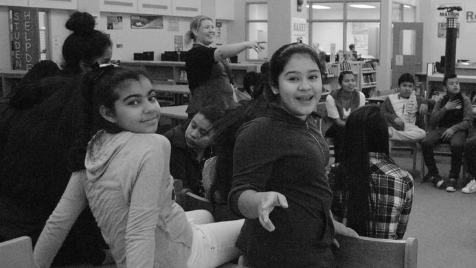 Director Jean-Michele Dissard came to George Washington Middle School to host a workshop with students new to America. Here, students were provided with a safe place to share their stories, inspire one another, empower each other and build community by sharing their journeys to America. Students then chronicled their stories using computer animation, photos and voice overs in their native languages and embedded their stories in a mural painted in the school cafeteria to educate fellow students, teachers and community members of the complexity and harsh realities of immigration.